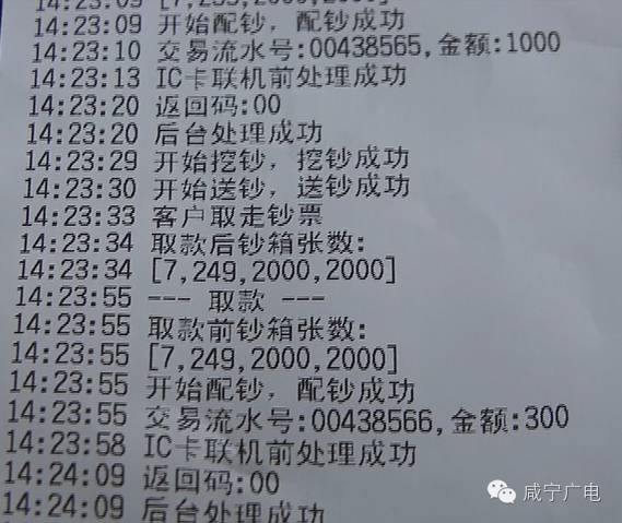 在师先生要求下,咸宁农商银行马桥支行相关负责人调取了9月30号下午的交易流水号。上面显示,师先生共操作了两次,一次取了1000,一次取了300。但是师先生坚称自己第一次取的是500。
