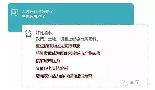 此次入选全国重点镇的条件为:人口达到一定规模、区位优势明显、经济发展潜力大、服务功能较完善、规划管理水平较高、科技创新能力等项内容。