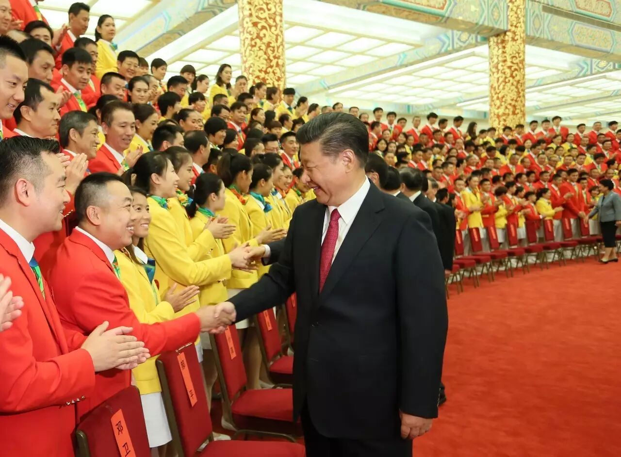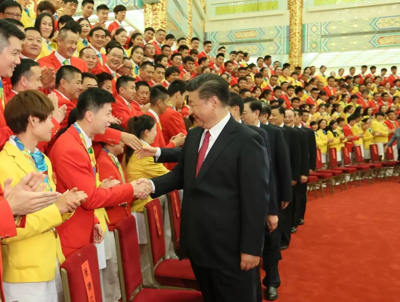 在热烈的掌声中,习近平发表了热情洋溢的讲话。他表示,在刚刚结束的里约奥运会上,你们顽强拼搏、奋勇争先,出色完成了各项参赛任务,取得了26枚金牌、18枚银牌、26枚铜牌的优异成绩,位居金牌、奖牌榜前列,实现了运动成绩和精神文明双丰收,续写了中国体育新辉煌。
