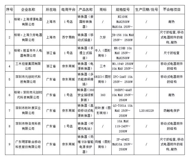 10、移动式插座不合格产品名单