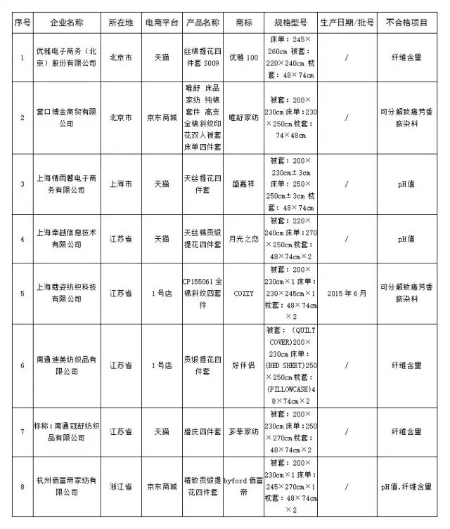 6、床上用品不合格产品名单