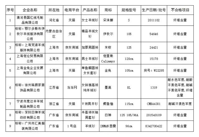 3、羊绒针织品不合格产品名单