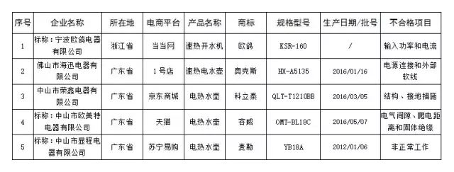 9、电水壶不合格产品名单