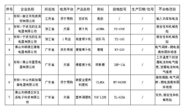 8、豆浆机不合格产品名单