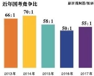 从招录比看,平均55人竞争1个岗位。其中,竞争最激烈的岗位为民盟中央办公厅“接待处主任科员及以下”一职,在截至报名结束前半小时竞争比就达9837:1,超过2013年度国考最热职位的9411:1,创下历史新高。