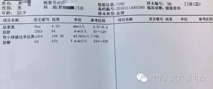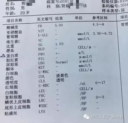 5.郭同学:20岁。发来两张检验报告,想问一下专家,这是肾炎吗?(郭同学发来的检查报告,已经发给陈主任)