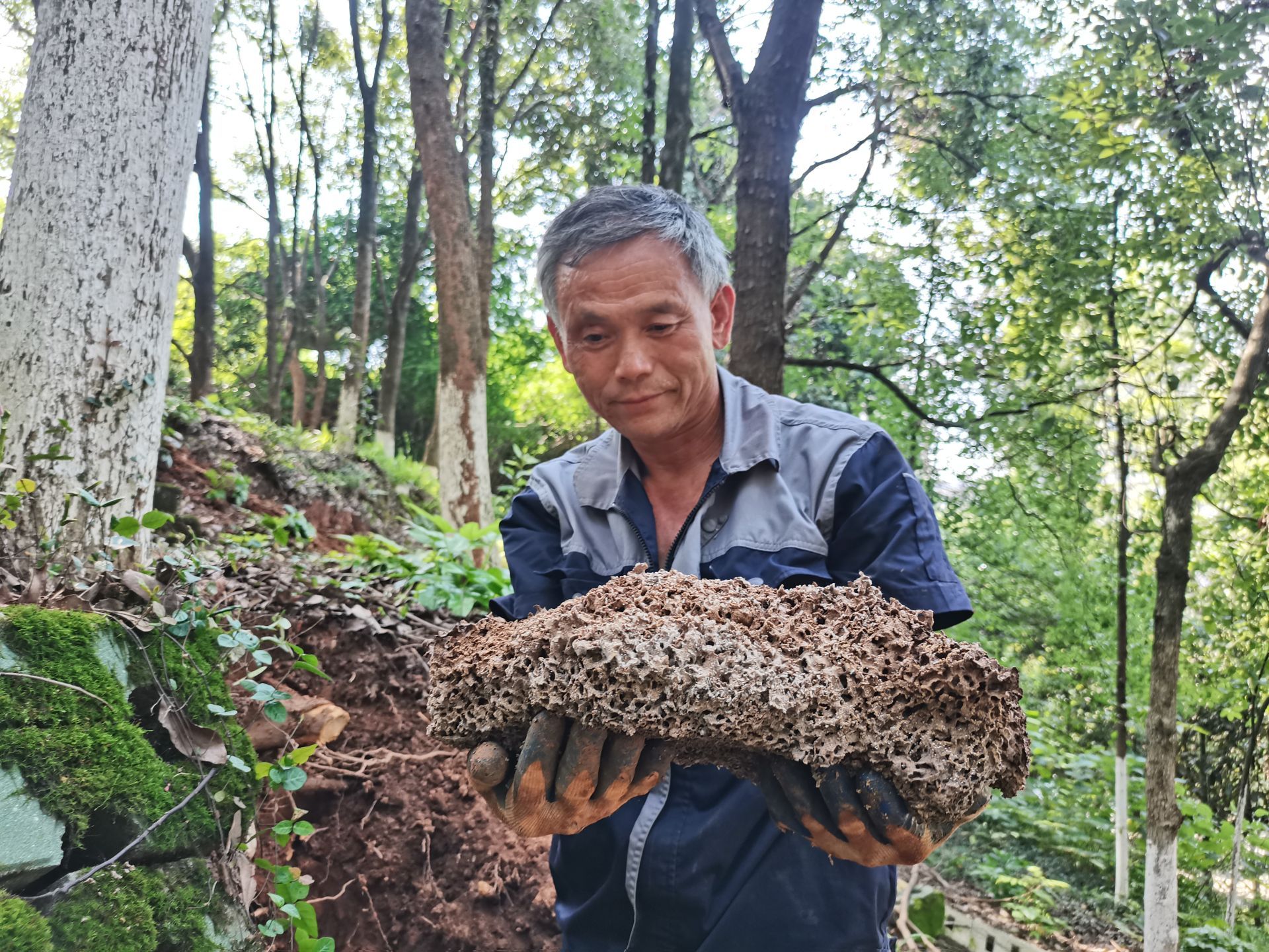 据了解,该处蚁巢位于市自然资源与规划局停车场后的小树林,树林内大量树木的树皮都被白蚁啃食,挖出来的蚁巢有20年左右。