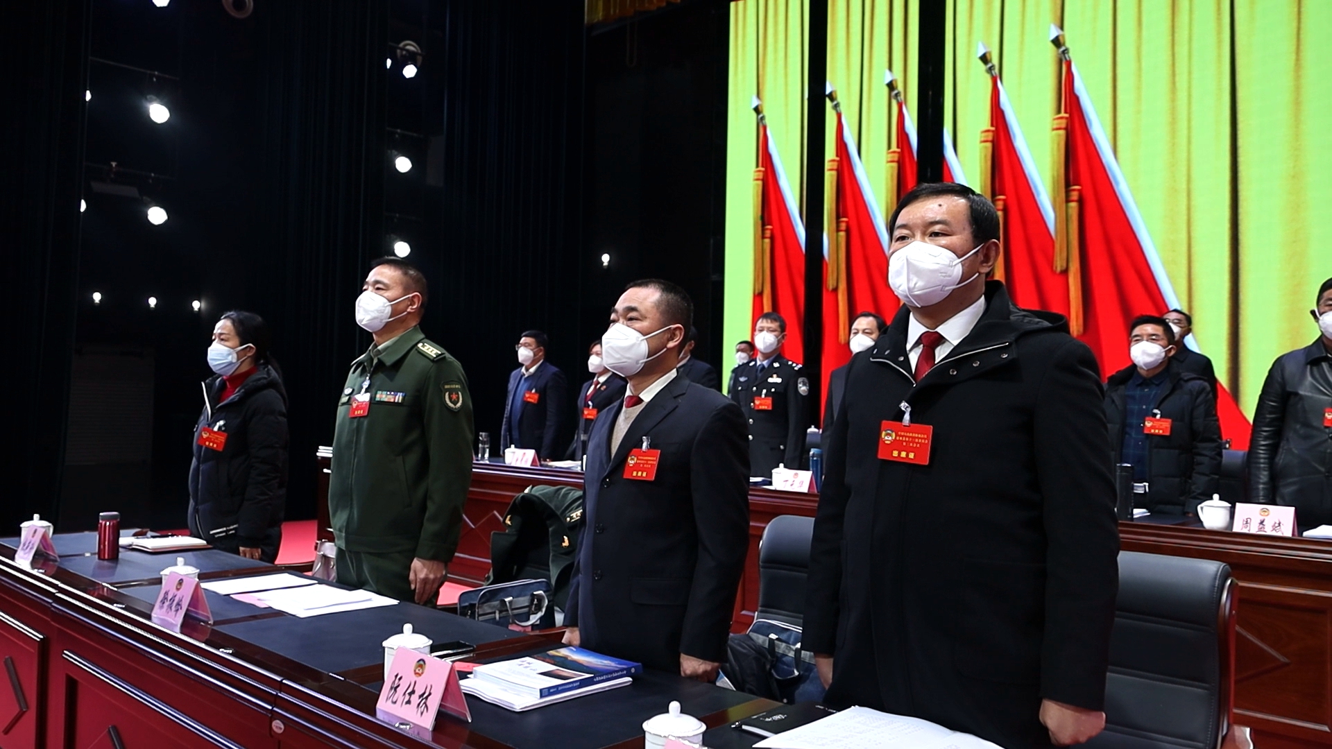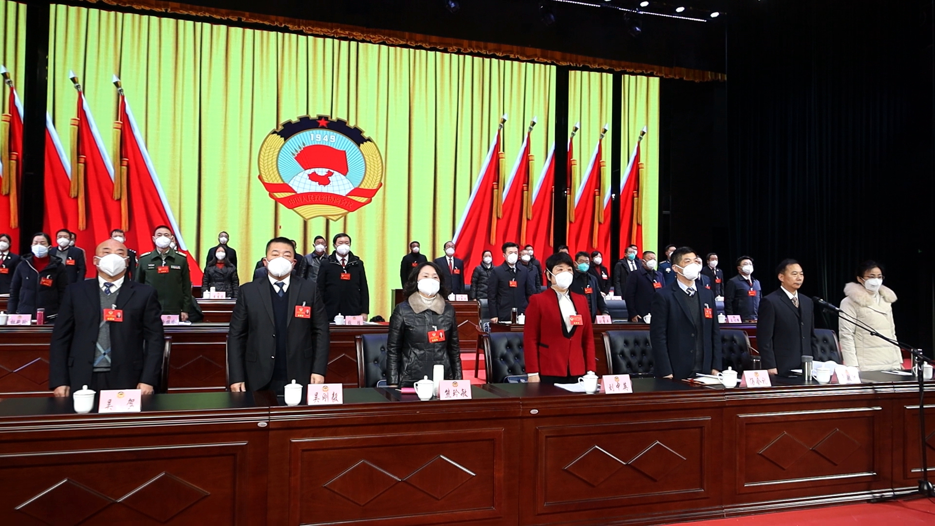 上午8点30分,大会在雄壮的国歌声中开幕。出席本次会议的县政协委员应到212人,线上线下参会委员共201人,符合政协章程规定。
