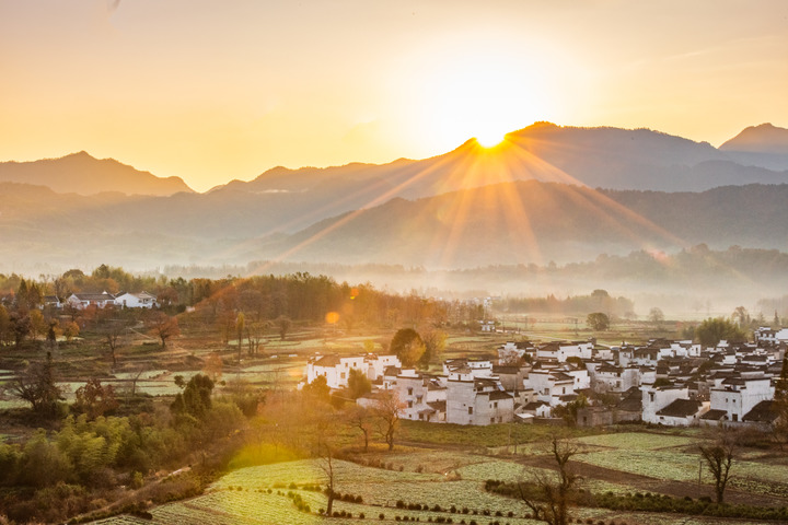2022年11月24日拍摄的安徽省黄山市黟县卢村晨景。新华社记者 郭晨 摄