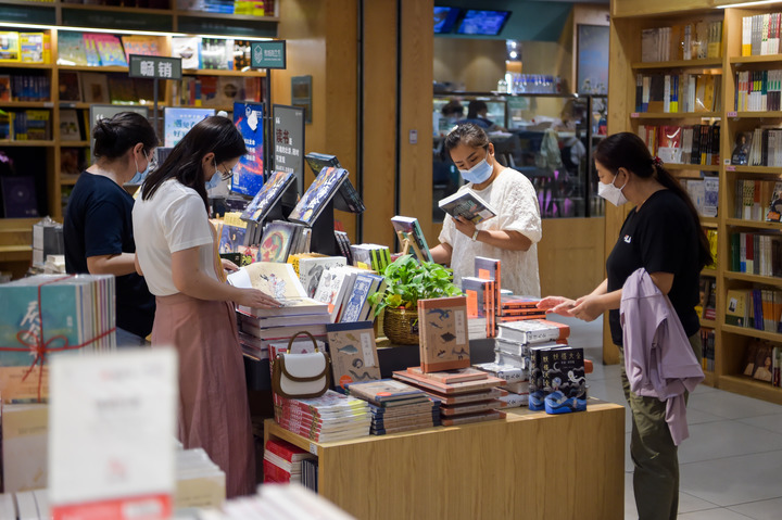 2022年8月9日,市民在呼和浩特市青城阅立方书店翻阅书籍。新华社记者 李志鹏 摄