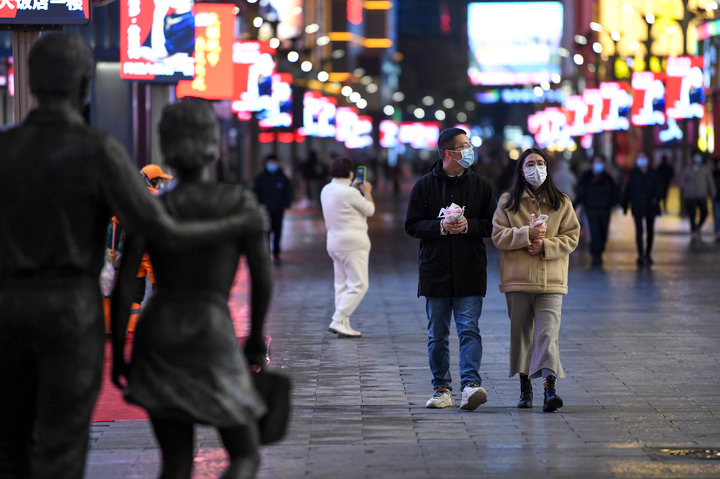 2022年11月11日,市民在宁夏银川市新华商圈步行街逛街。新华社记者 冯开华 摄