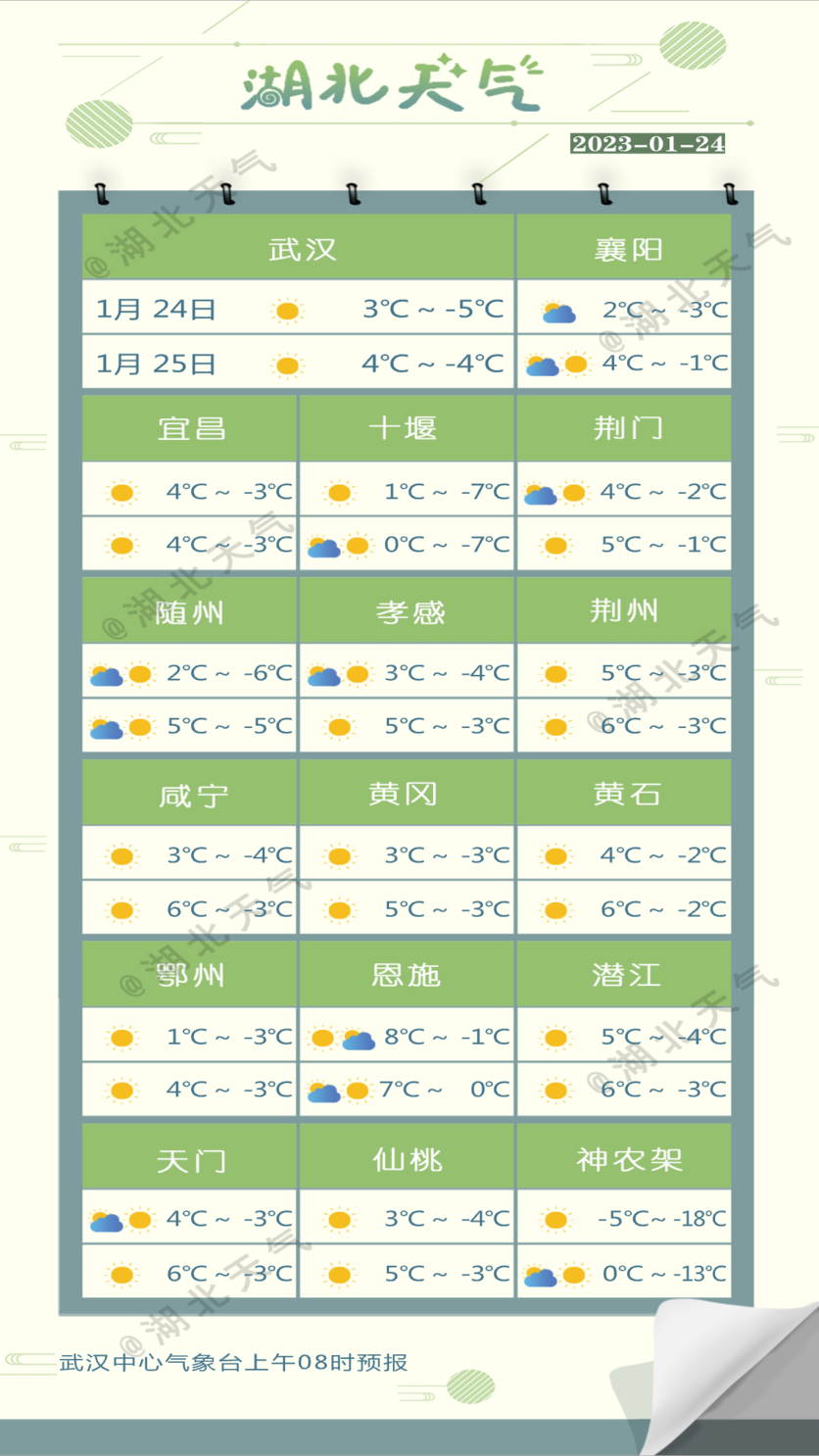 最低气温:北部-8~-5℃;南部-5~-2℃