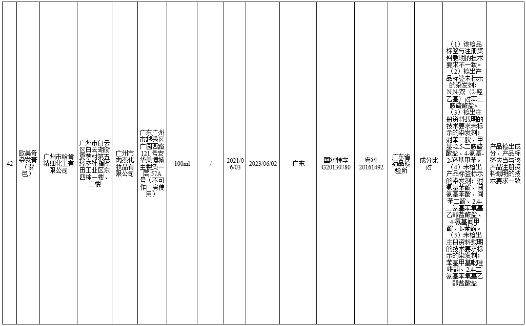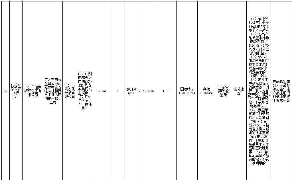 根据《通告》,在2022年国家化妆品监督抽检工作中,经江苏省食品药品监督检验研究院等单位检验,标示为广州市佳桐化妆品有限公司生产的艾贝尔芳香滋润型染发霜(自然黑色)等70批次化妆品不符合规定。
