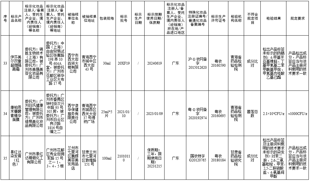 国家药监局1月29日发布的《关于70批次不符合规定化妆品的通告》(2023年第5号)显示,美度染发膏、新派染发膏(自然黑色)、章华生态焗油染发霜(3.3)、宫中秘策爽防晒乳液SPF50 PA+++、PINKY凡士林烟酰胺臻养润肤膏、怡人雅洗发液、片仔癀深抗敏专效深养牙膏等70批次化妆品(含牙膏,下同)不符合规定。