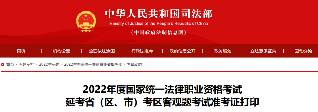 2022年度国家统一法律职业资格考试延考省(区、市)考区客观题考试将于2023年2月25、26日举行。2月20日0时起,开通准考证网上打印通道,报名参加客观题考试人员,请登录司法部官网(www.moj.gov.cn)打印准考证。
