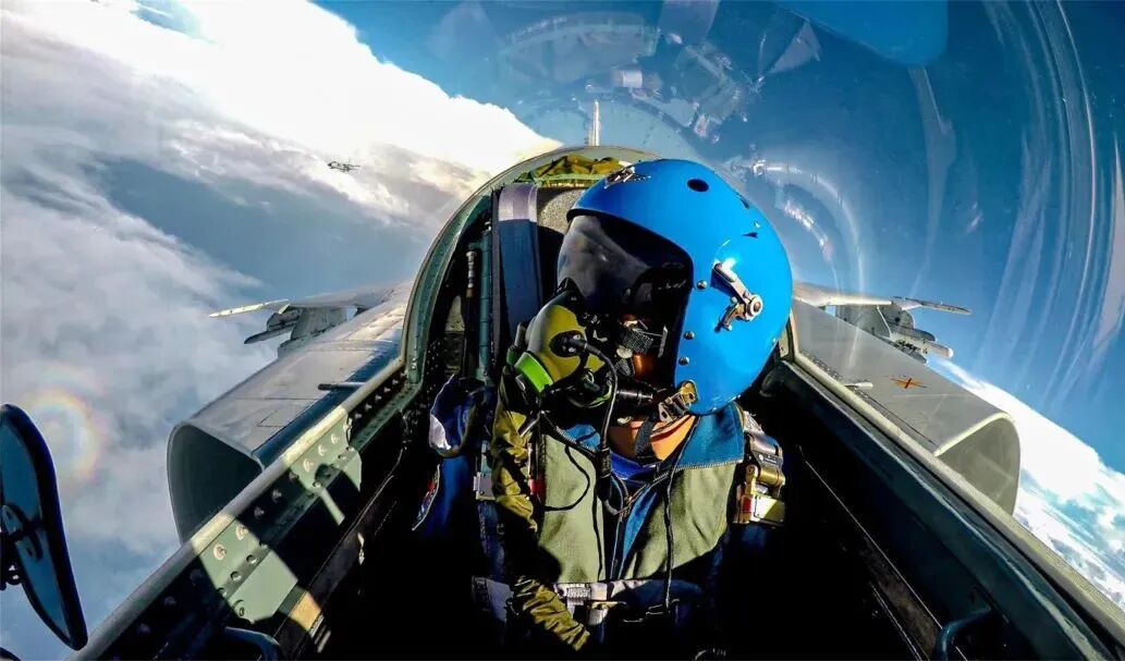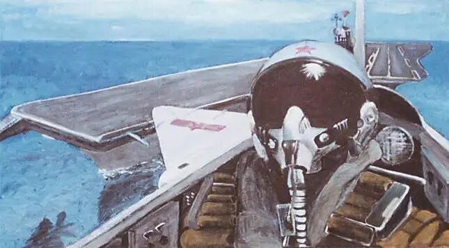 画面中一名飞行员驾驶舰载机从航母上起飞