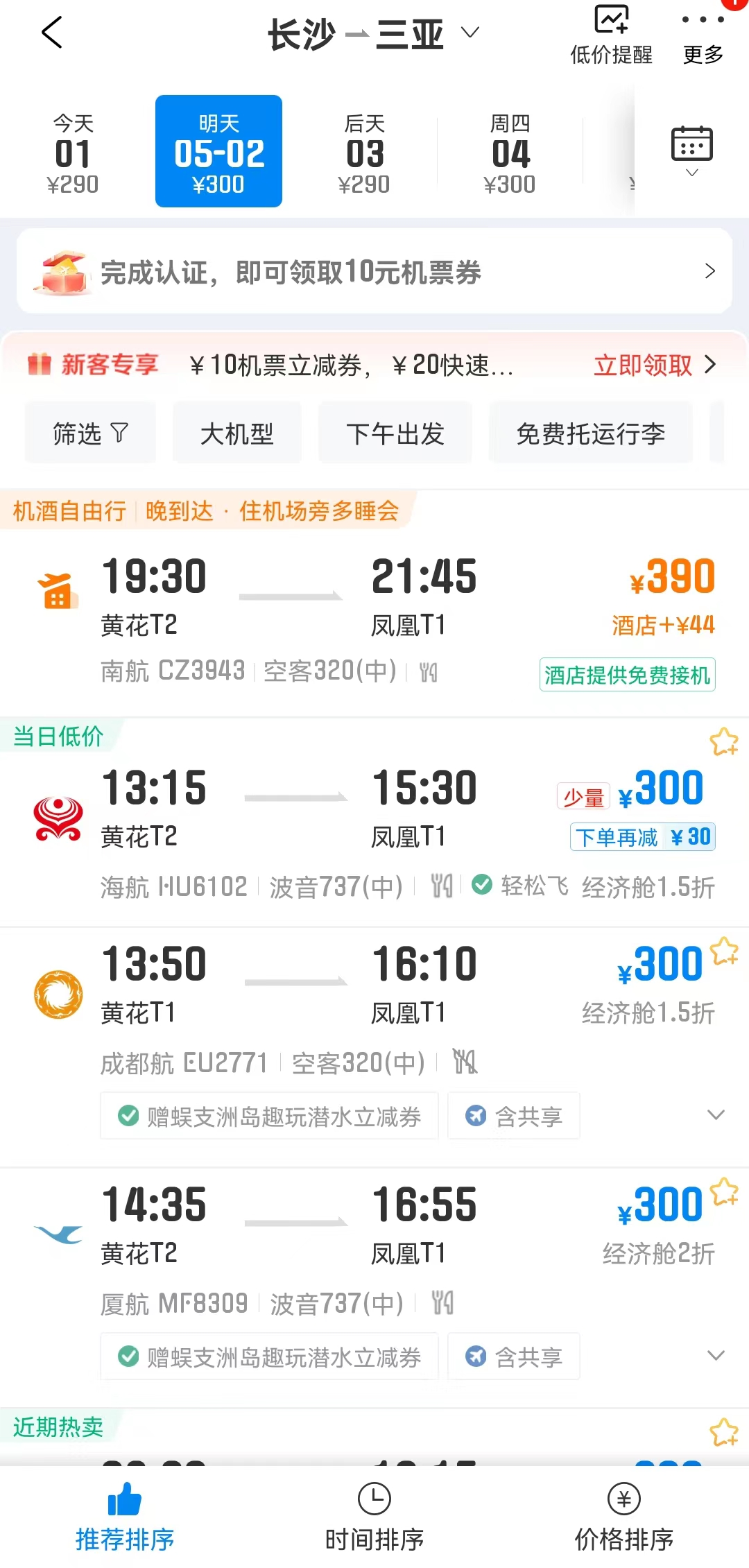 长沙飞三亚也便宜了