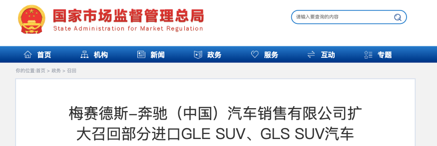 即日起,梅赛德斯—奔驰(中国)汽车销售有限公司扩大召回生产日期在2019年6月19日至2023年1月16日期间的部分进口GLE SUV和GLS SUV汽车,共计40317辆。