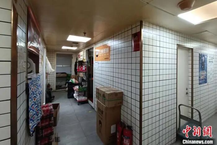中新财经在调查中发现,该地址一楼为一家生鲜超市,此外并无明显餐饮店标识,然而不断进出的外卖员暴露了其中的秘密:跟随轻车熟路的外卖员乘坐电梯至3层,昏暗的灯光下楼层被三条通道分割,中新财经在这里并没有找到所谓的“301室”,但每一个走廊两边都是各类“幽灵外卖”的厨房操作间。