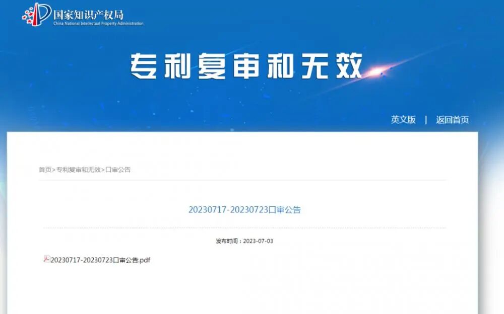 国家知识产权局网站显示,该专利将于7月21日口审。
