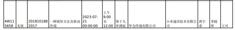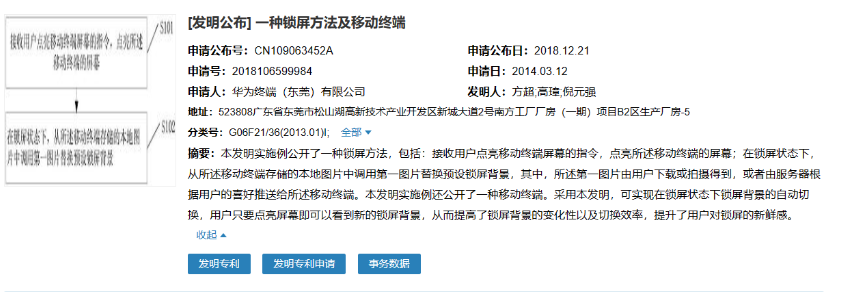 该专利的名称为“一种锁屏方法及移动终端”,将于7月21日口审。