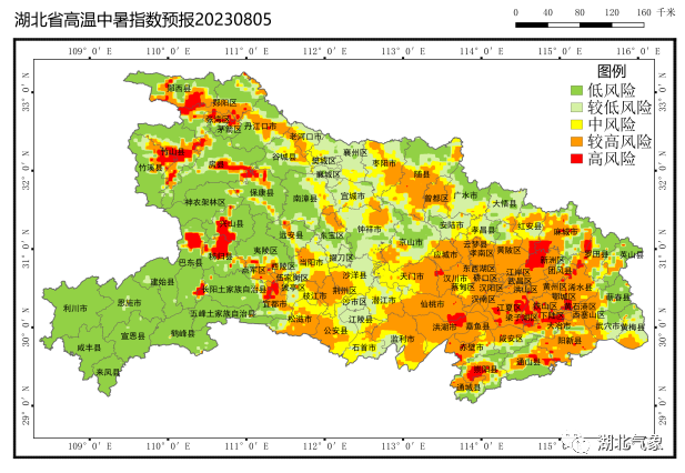 预计5日,鄂东部分地区高温中暑风险较高,鄂西局部达高风险;