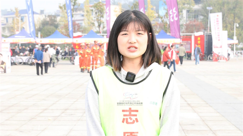 志愿者 金灵龙:很高兴能参加志愿者服务,我会尽职尽责完成各项比赛服务,展现通城热情好客、文明开放的良好形象。