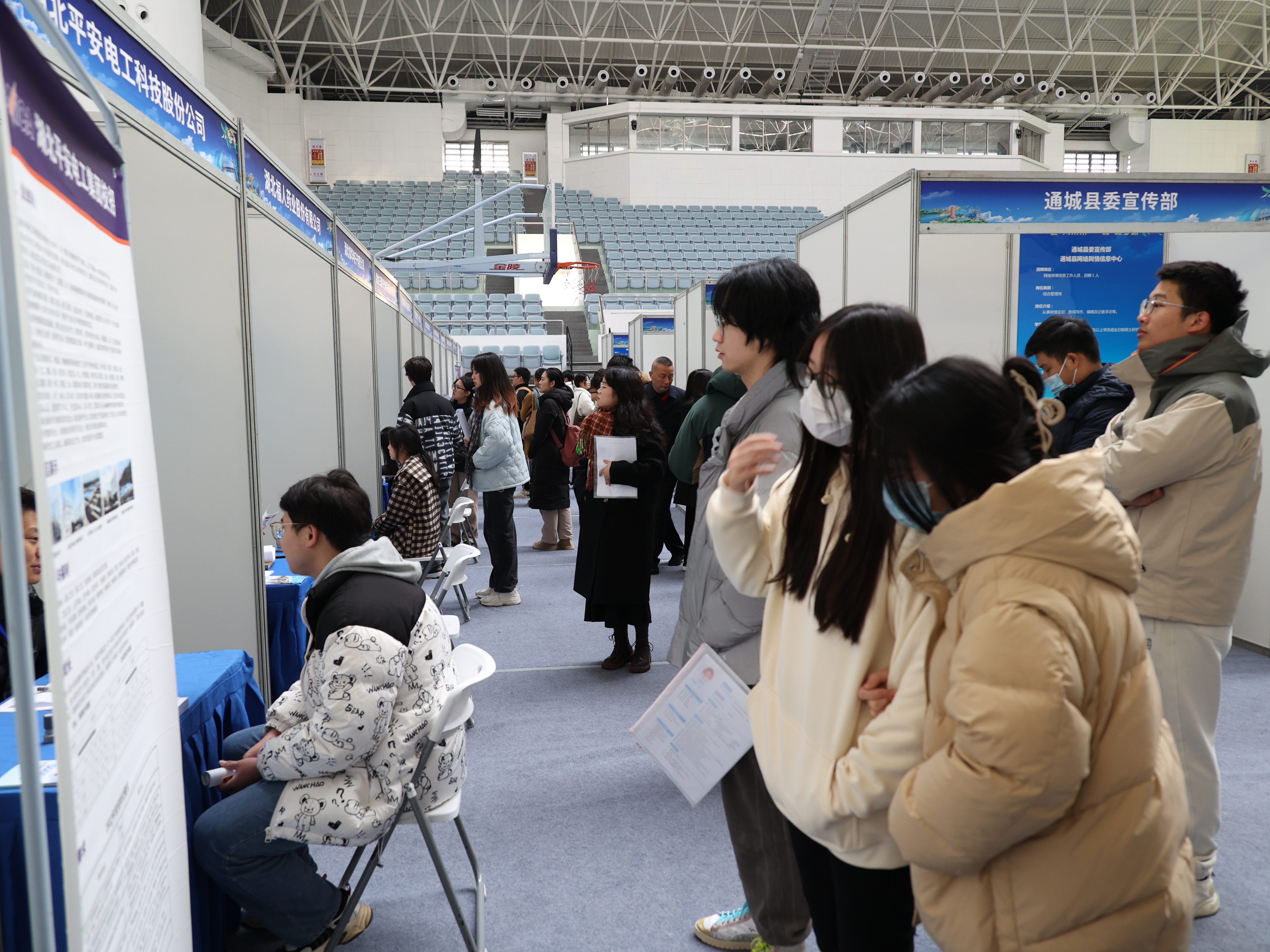 招聘会在华中师范大学佑铭体育馆举行,分为事业单位专场和企业专场,共提供优质事业编制岗位42个、重点企业岗位142个,吸引了武汉各高校毕业生及外省部分高校毕业生前来应聘。