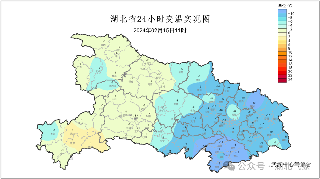 鄂西南、江汉平原东部、鄂东北东部、鄂东南小雨转多云;其他地区多云。最高气温大部地区10~15℃,最低气温北部-2~2℃、南部2~6℃。偏北风4到5级,阵风6到7级转3级。