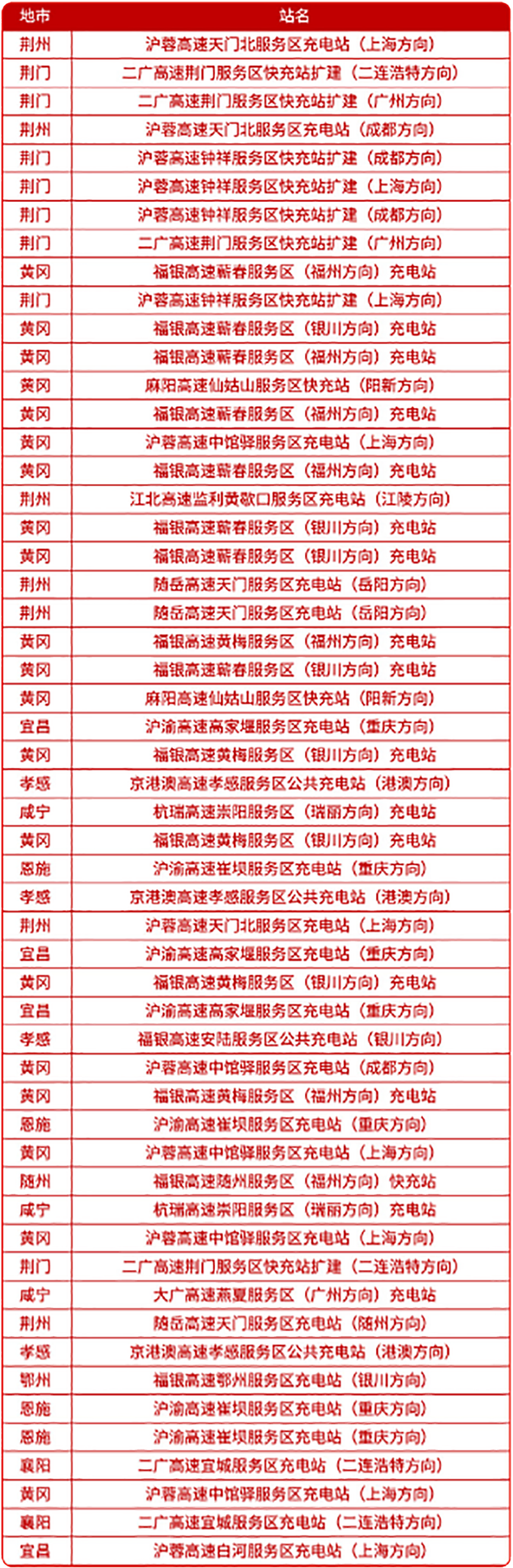 G50沪渝高速往上海方向散花至武穴枢纽段、花桥至黄梅段、排湖至仙桃段、荆州至沙市段、高坪至巴东段、利川至恩施西段、往宜昌方向潜江至后湖段;