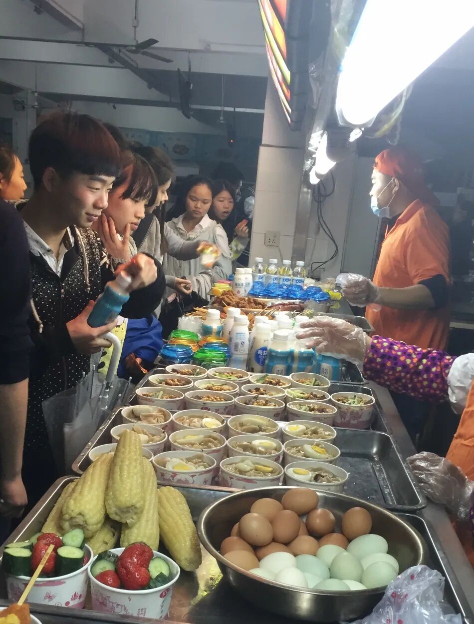 江夏区实验高级中学学生排队选取食堂准备的“营养夜宵”。(资料图)