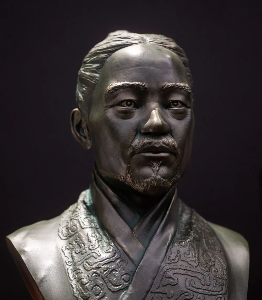 为了加深对“喜”的感性认识,进一步讲好中华简牍故事,研究人员通力合作复原“喜”的面貌——依据“喜”的头骨,通过二维线性测量和三维全景照相技术采集到精确数据,重建高精度颅骨三维模型,精确地分析其颅面部特征;模拟面部肌肉模型、添加面部软组织,并综合运用虚拟素材比对技术、数字雕刻技术等生成面部白膜,再添加五官、皮肤纹理和毛发;然后结合该化石的生物人类学信息和考古学遗址的环境背景因素,对其肤色、发色、瞳色等特征进行复原。