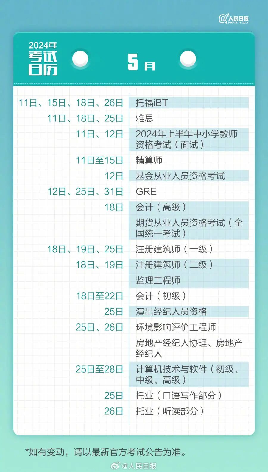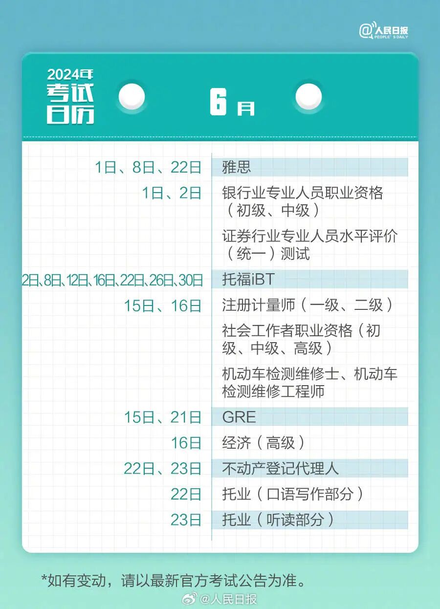 这份2024考试日历请收好