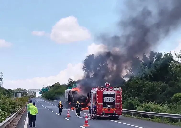 7月10日12时50分许,兰海高速公路2215KM+500M处发生一起大货车自燃事故。当天,司机程某驾驶重型半挂牵引车装载34吨木板,行驶至事发路段时车辆后侧中排车轮着火,火星点燃车上木板,顿时火光冲天、浓烟滚滚。经调查,起火原因为货车行驶过程中轮胎发生爆胎后与地面摩擦着火燃烧。