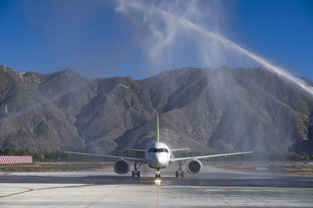 C919首次飞抵拉萨。新华社发