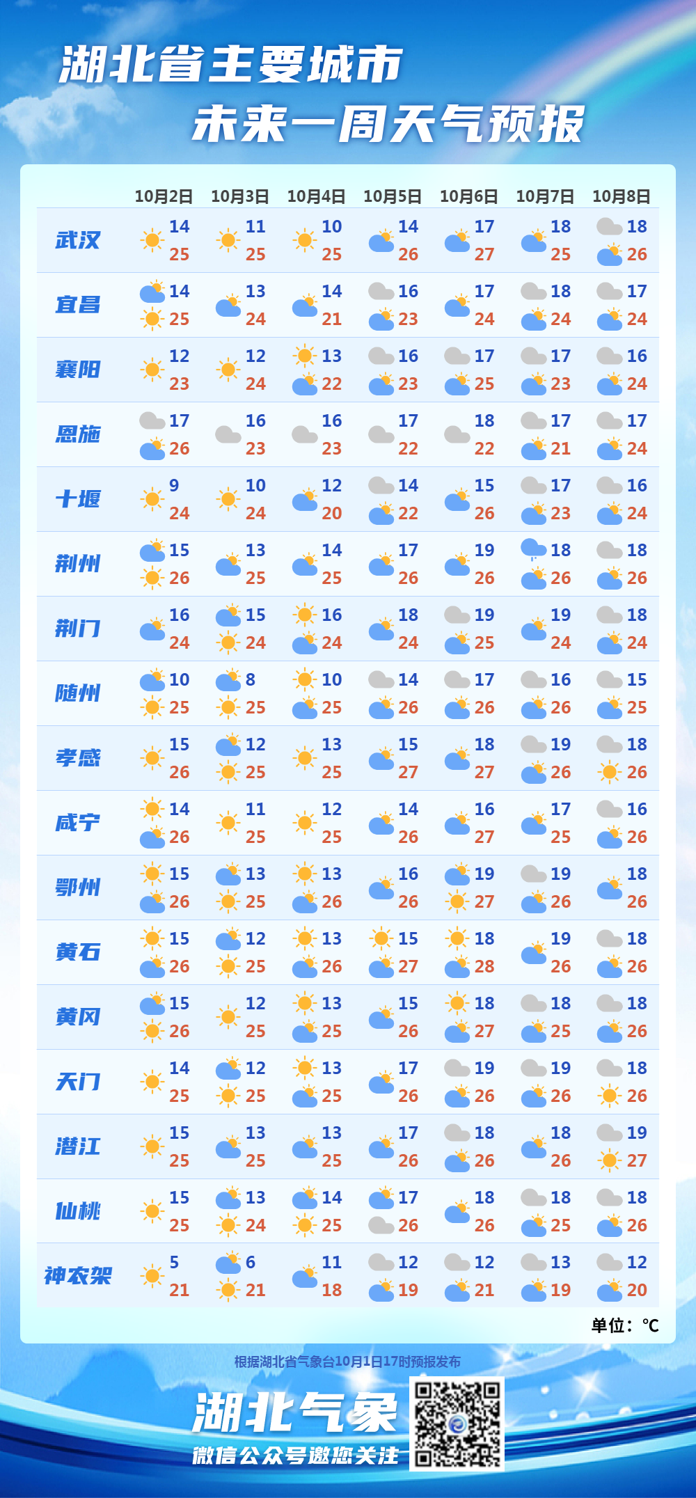 二是天空持续放晴,天气凉爽,适合户外活动,但仍要注意防晒,因为武汉未来几天紫外线强度高。