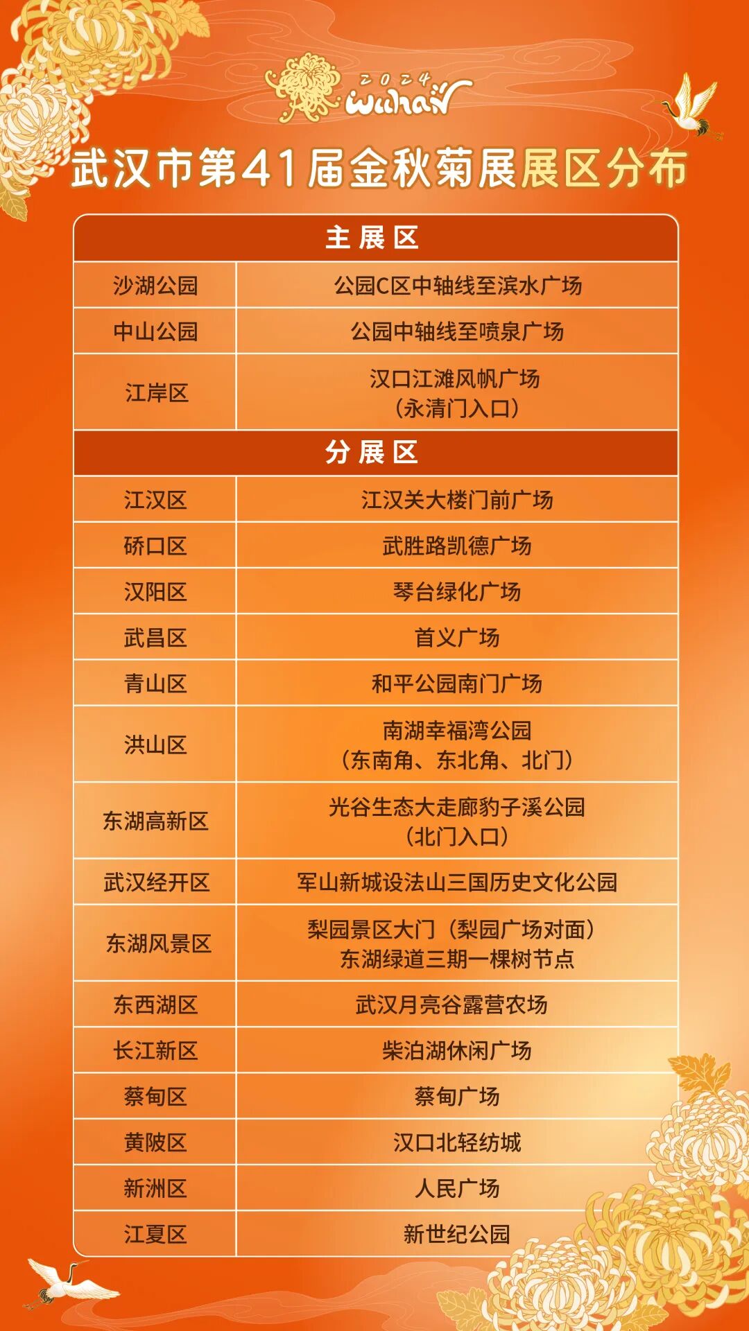 本届金秋菊展,沙湖公园C区、中山公园、江岸区汉口江滩风帆广场三大主展区颜值超高,各具特色。