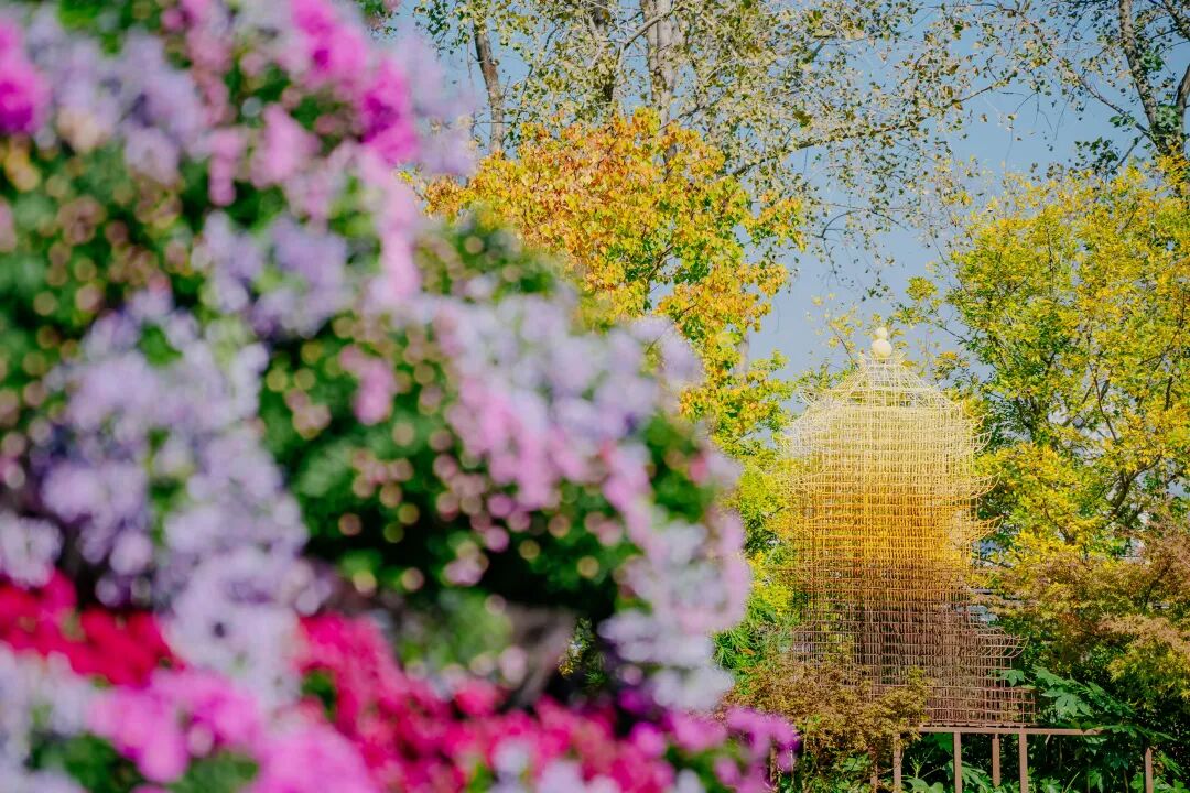 在世界花园大会亮相过的现代钢丝“黄鹤楼”雕塑作品,也在湿地艺术园“大师园”里再现,让金秋菊展融入了“白云黄鹤”的城市特色。