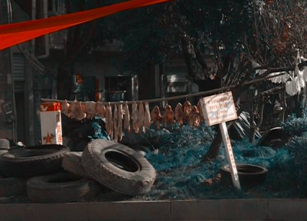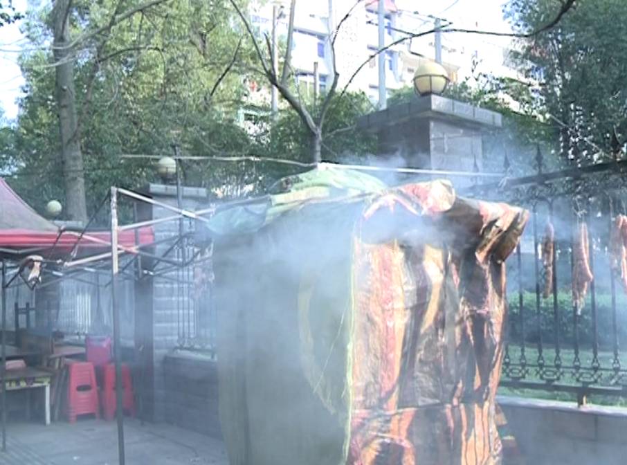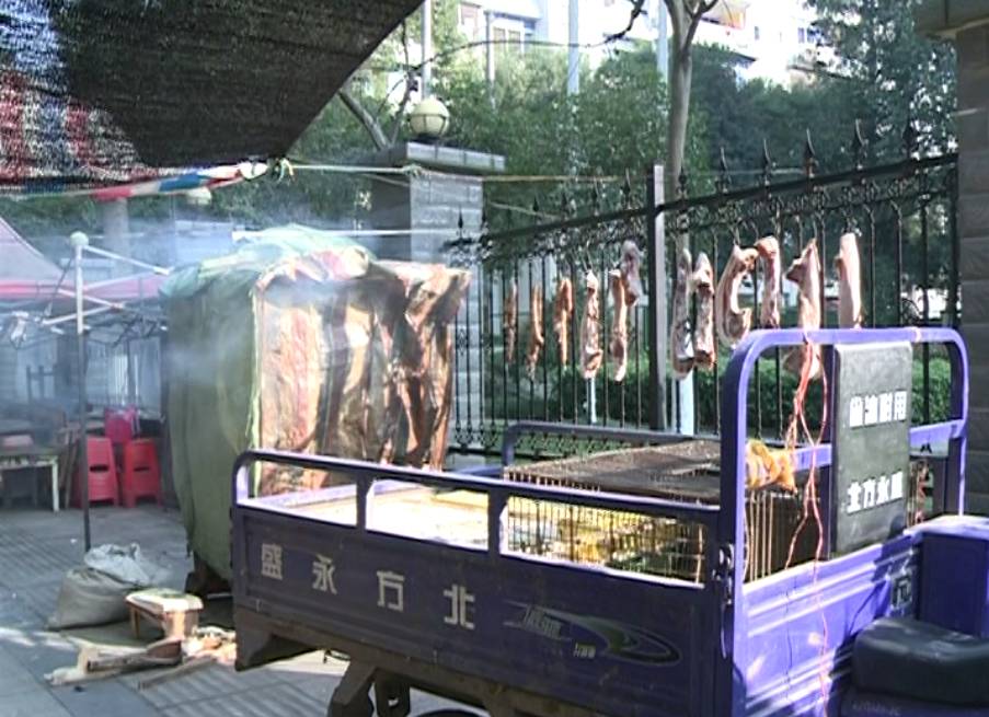 更为严重的是,在赤壁市人口密集的街道,几户居民搭起了简易火炉用来熏制腊肉腊鱼。