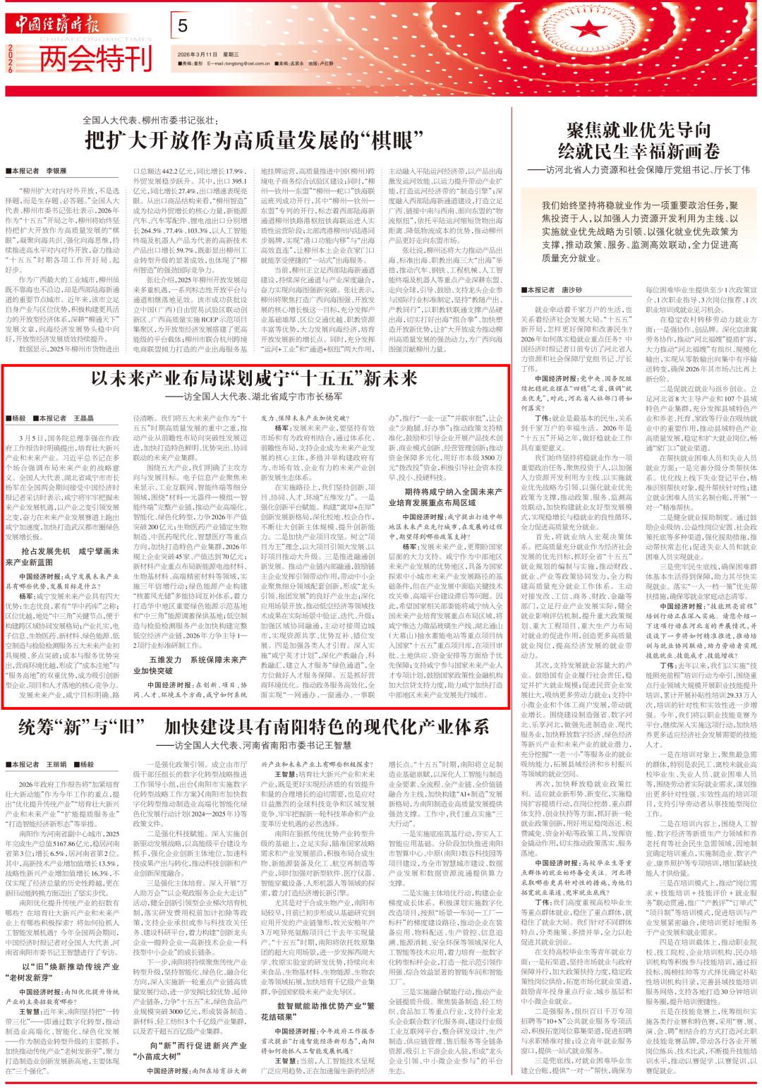 中国经济时报:在创新、项目、协同、人才、环境五个方面,咸宁如何系统发力、保障未来产业加快突破?