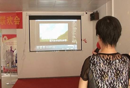 在服务中心里,还有一个活动场所,爸妈们在这里可以欣赏喜欢的老电影,高兴时唱唱歌、跳跳舞。