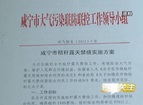 ★市环保局制定了《咸宁市秸秆露天禁烧实施方案》,将秸秆露天禁烧和综合利用工作纳入各县市区大气污染防治年终目标考核重要内容。