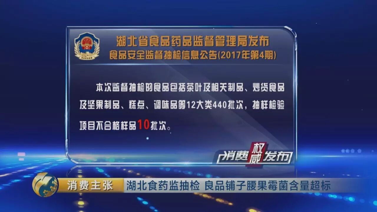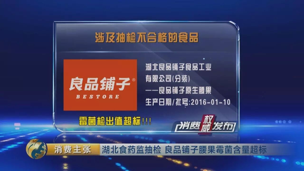 2月7日央视财经频道《消费权威发布》:湖北食药监抽检,良品铺子腰果霉菌含量超标;上海工商局抽检,机场及周边免税店箱包服装近五成不合格产品;惠普扩大召回笔记本电池组22097个。