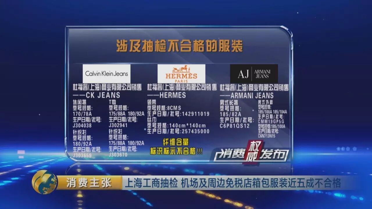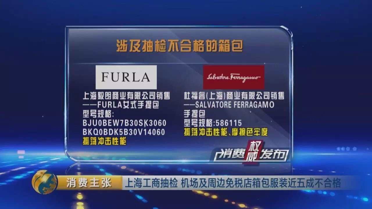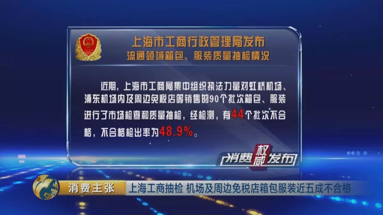 2、上海工商局抽检 机场及周边免税店箱包服装近五成不合格产品