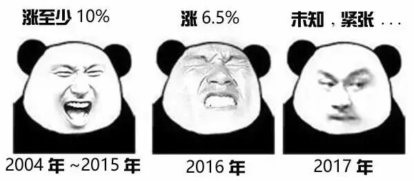 都会有一定幅度的上调,2016年涨幅为6.5%