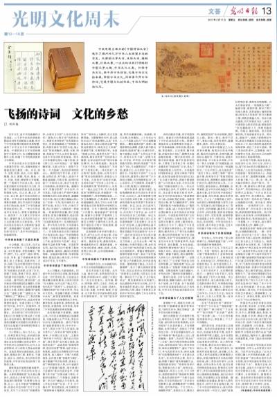 晚清龚自珍的“绝域从军计惘然,东南幽恨满词笺。一箫一剑平生意,负尽狂名十五年”,表达了他面对内忧外患心急如焚,希望能用自己的文武之才为国出力。晚清黄遵宪多次出使英、美、日等国考察,被称为“真正是走向世界的第一人”,他的诗作多以反帝卫国、变法图强为主题,甲午战争后他写下《悲平壤》《哀旅顺》《哭威海》《台湾行》《渡辽将军歌》等诗作以示抗争,写了《感怀》《杂感》等诗词热情讴歌变法维新,希冀中华民族的重新崛起:“黄人捧日撑空起,要放光明照大千。”面对丧权辱国的《马关条约》签订,台湾被割让日本,谭嗣同长歌当哭:“四万万人齐下泪,天涯何处是神州?”喊出了多少中华儿女共同的痛感!思乡曲、桑梓情,爱国心、复兴志,中华诗词以强烈的艺术感染力、情感凝聚力、文化向心力、身份认同感,成为中华儿女天下归心的集结号。
