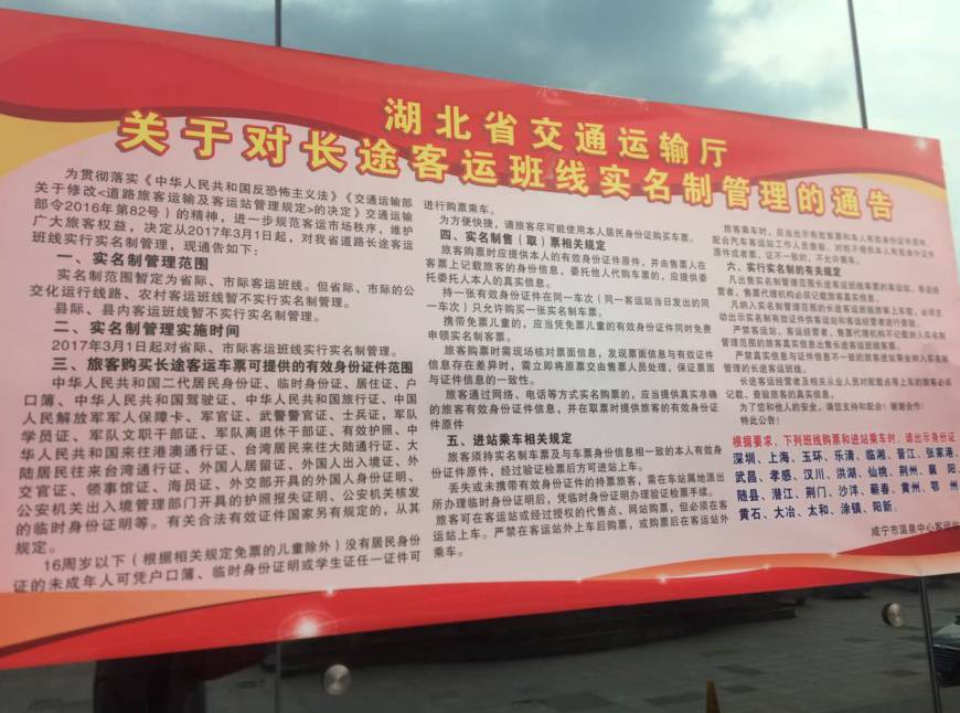 咸宁广播电视台记者今天从市运管处了解到,根据交通运输部相关规定,自2017年3月1日起,我市将对省际、市际客运班线实行实名制管理。
