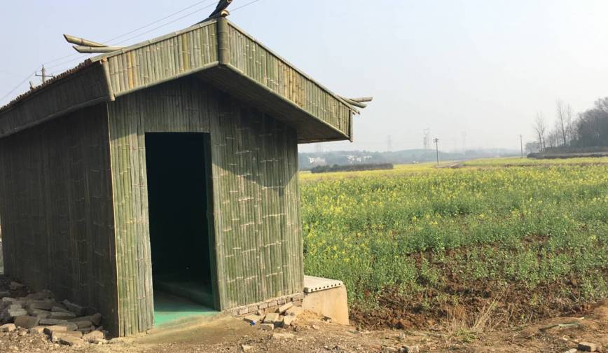 路边有临时搭建的竹子厕所,创意满分,文艺满分