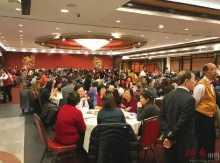 圣诞节期间,美国华埠中餐馆前排起长队。(来源: 美国《侨报》)