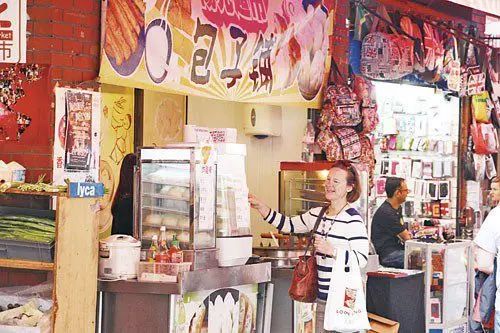 伦敦街边的中式餐点店铺吸引着络绎不绝的本地顾客。(来源:法国《欧洲时报》)